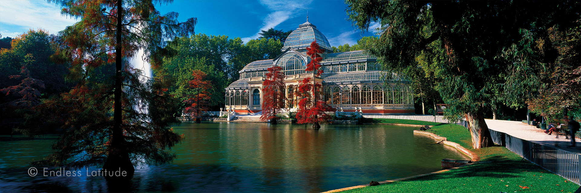 Postal panorámica de Madrid: El Palacio de Cristal en el Parque de El Retiro -